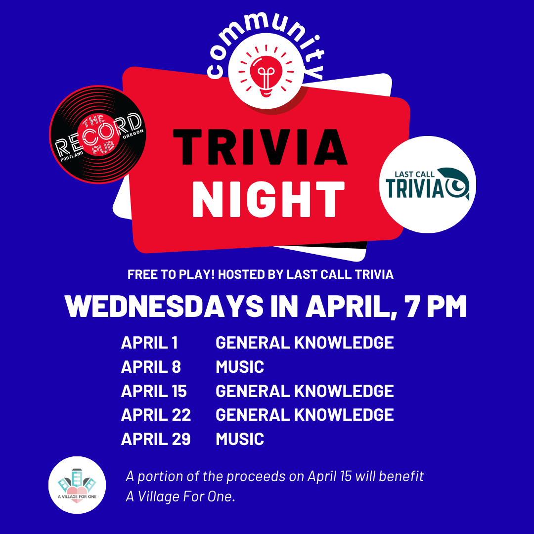 Join us as we team up with Last Call Trivia for our new Community Trivia Night on Wednesday evenings at The Record Pub. The game starts at 7 p.m., and you’ll want to arrive early to reserve a good space to play.